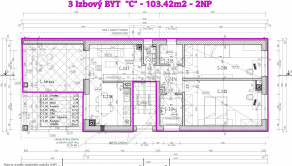 Úžitková plocha bytu C 75m2 + terasa 29m2 – orientácia terasy juhozápad