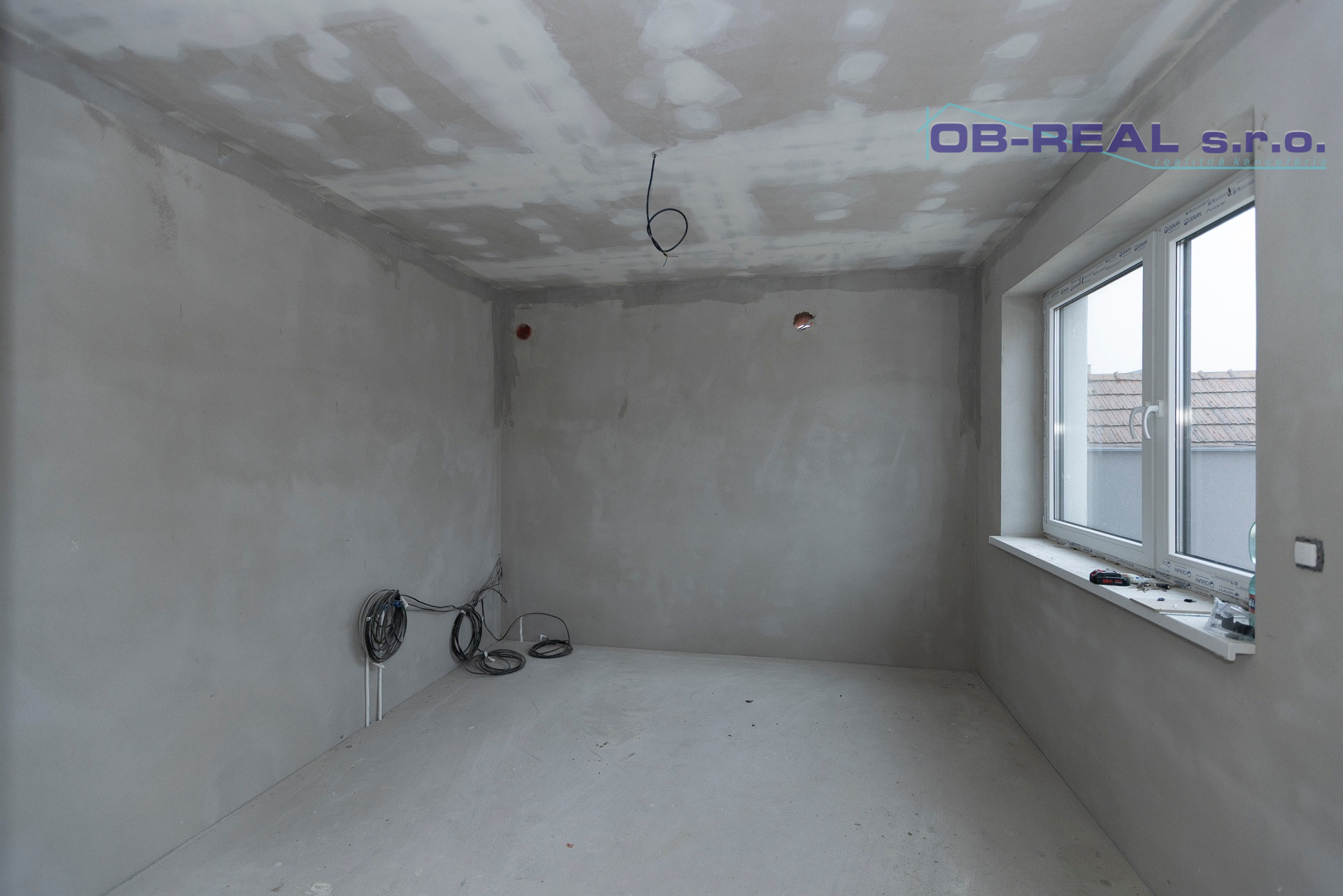 STAVBA: Obvodové múry hr. 300mm sú murované z tehál HELUZ UNI 30 brúsená na murovaciu maltu HELUZ SBC, z exteriéru zateplený polystyrén ISOVER hr. 150mm, s ryhovanou silikátovou omietkou s farebným odtieňom biela a sivobiela. Soklová omietka mramorová kurilplast. Murivo vnútorné HELUZ brúsená tehla, nosné 300mm, ostatné priečky hr. 175 a 115mm. Železobetónový strop. nad prízemím. Spádová, zabednená, izolovaná strecha, strešná krytina Fatrafol (farebný odtieň antracit), izolácia minerálnou vlnou ISOVER. Okná, vstupné a terasové dvere plastové s trojsklom.