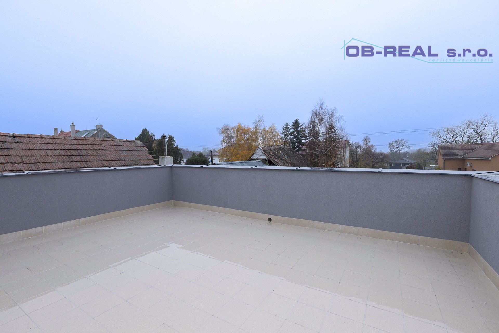 Miestnosti: Prístup do chodby bytu je zo schodišťa. Z chodby sú prístupné všetky miestnosti - WC, sklad, kúpeľňa, detská izba, spálňa rodičov, obývačka, kuchyňa a z nej priestranná terasa.