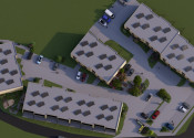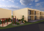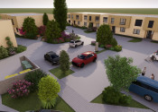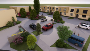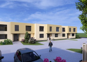 Trojizbové byty sa nachádzajú na druhom podlaží dvojpodlažnej budovy. Každý blok štyroch bytov (2 byty na prízemí, 2 na poschodí) má vždy samostatný vchod.
