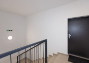 Trojizbové byty sa nachádzajú na druhom podlaží dvojpodlažnej budovy. Každý blok štyroch bytov (2 byty na prízemí, 2 na poschodí) má vždy samostatný vchod.