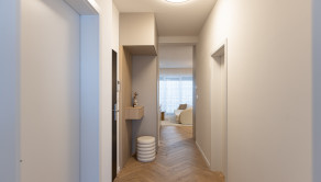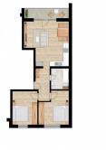 Tento 3-izbový byt disponuje vstupnou chodbou, obývačkou voľne prepojenou s kuchyňou, loggiou z obývačky, kúpeľňou s WC a dvoma spálňami. Výmera bytu je 71,83 m2 z toho 6,63 m2 tvorí loggia.