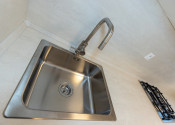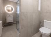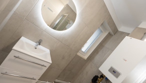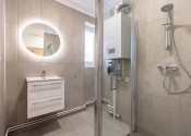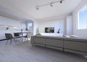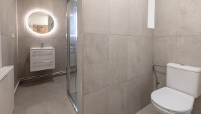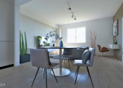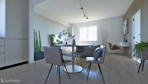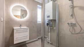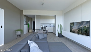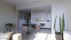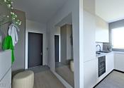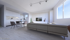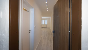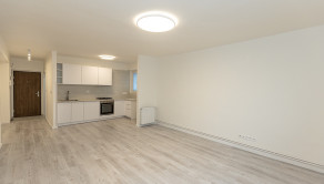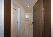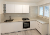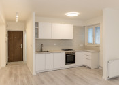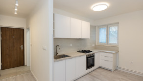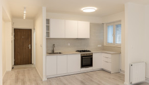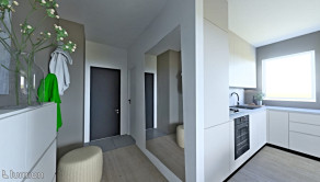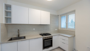 Byt má novú, upravenú dispozíciu. Odstránením priečok sa kuchyňa voľne prepojila s obývačkou, čím vznikol veľký prevzdušnený a presvetlený priestor. Je tu osadená nová kuchynská linka vyhotovená na mieru aj so spotrebičmi. Taktiež kúpeľňa sa dispozične úplne zmenila a je tu teraz WC čiastočne oddelené priečkou, sprchovací kút, umývadlo so skrinkou, priestor pre AP a kotol ÚK.