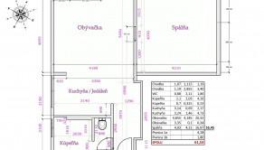Podlahová plocha spolu 61,53m2 > Byt 55,45m2 + pivnica 4,28m2 + pivnica 1,80m2.
