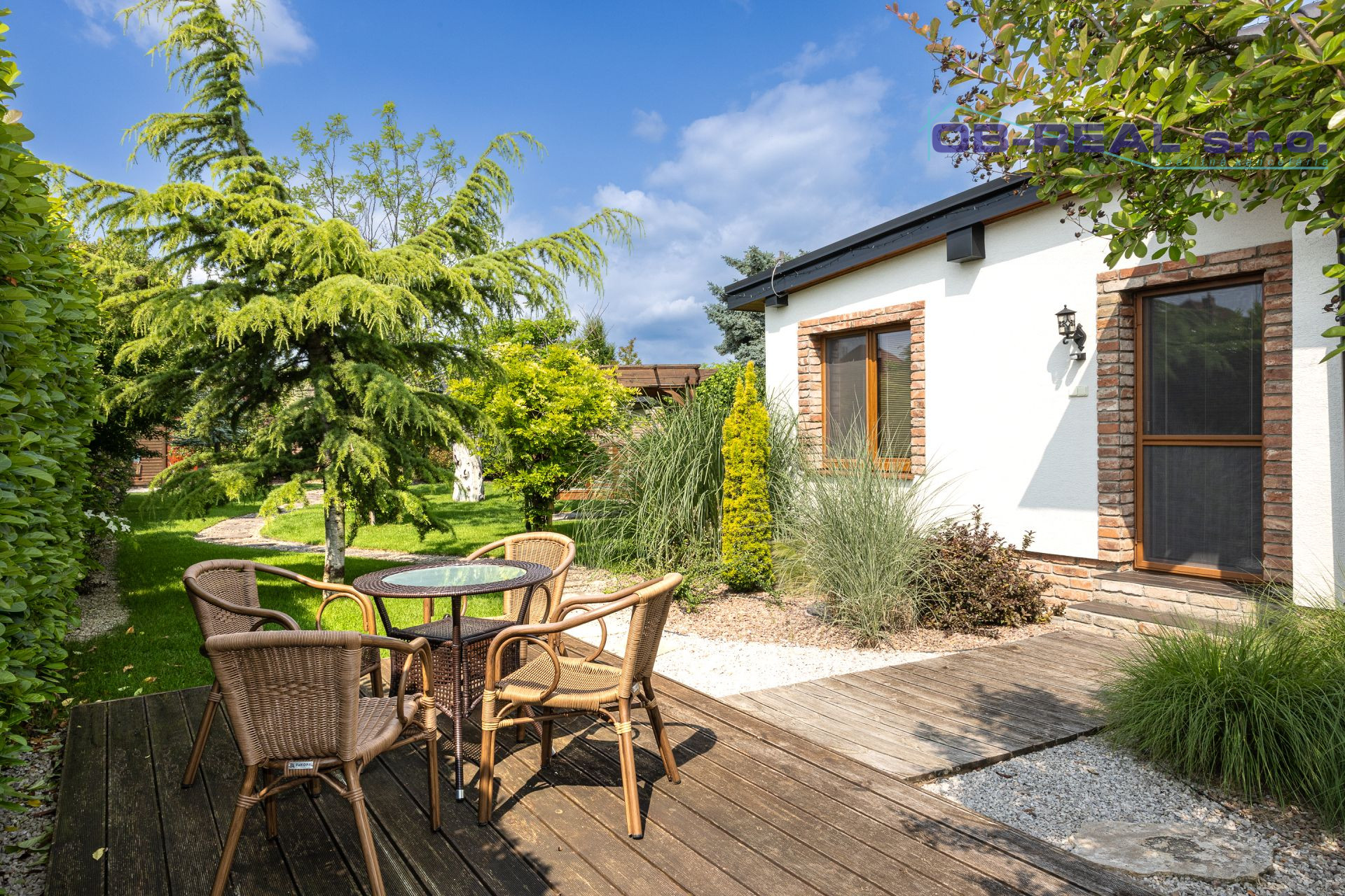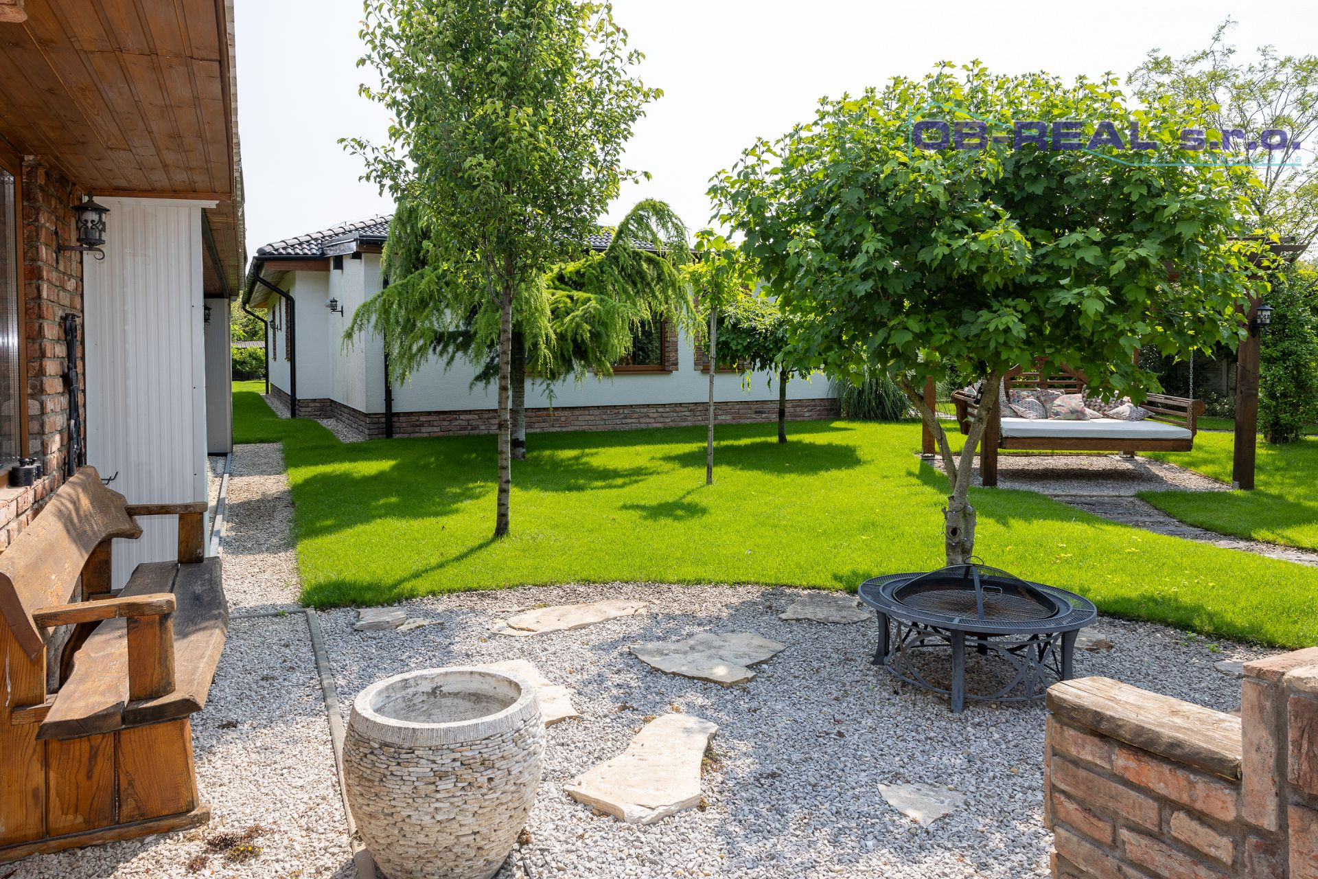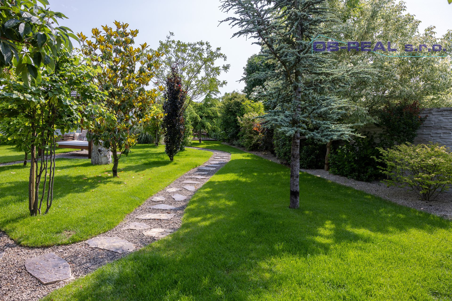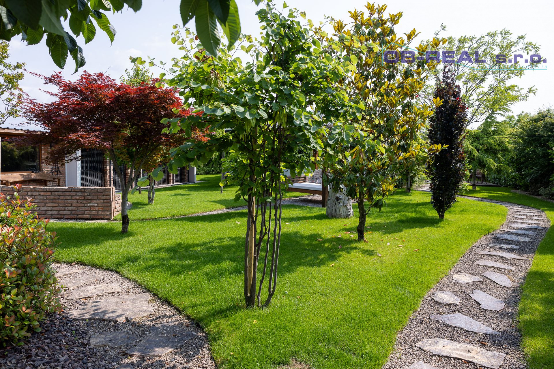 Úprava celého pozemku okolo domu je premyslená a komplexná, s precízne vypracovaným konceptom, tak, že sa tu budete cítiť nerušene, príjemne a pohodlne.