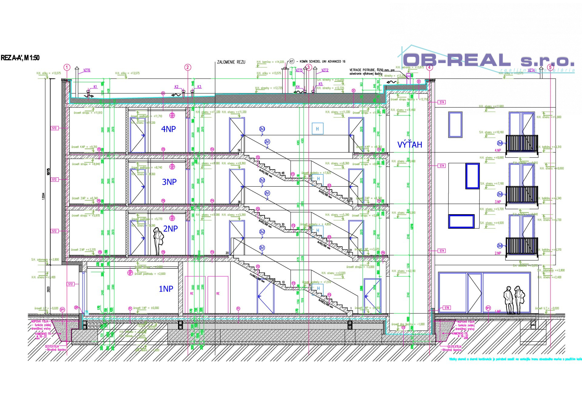 - Strecha železobetónová, spádová, s tepelnou izoláciou Hr. 40cm, Na povrchu izolačná fólia Fatrafol.
