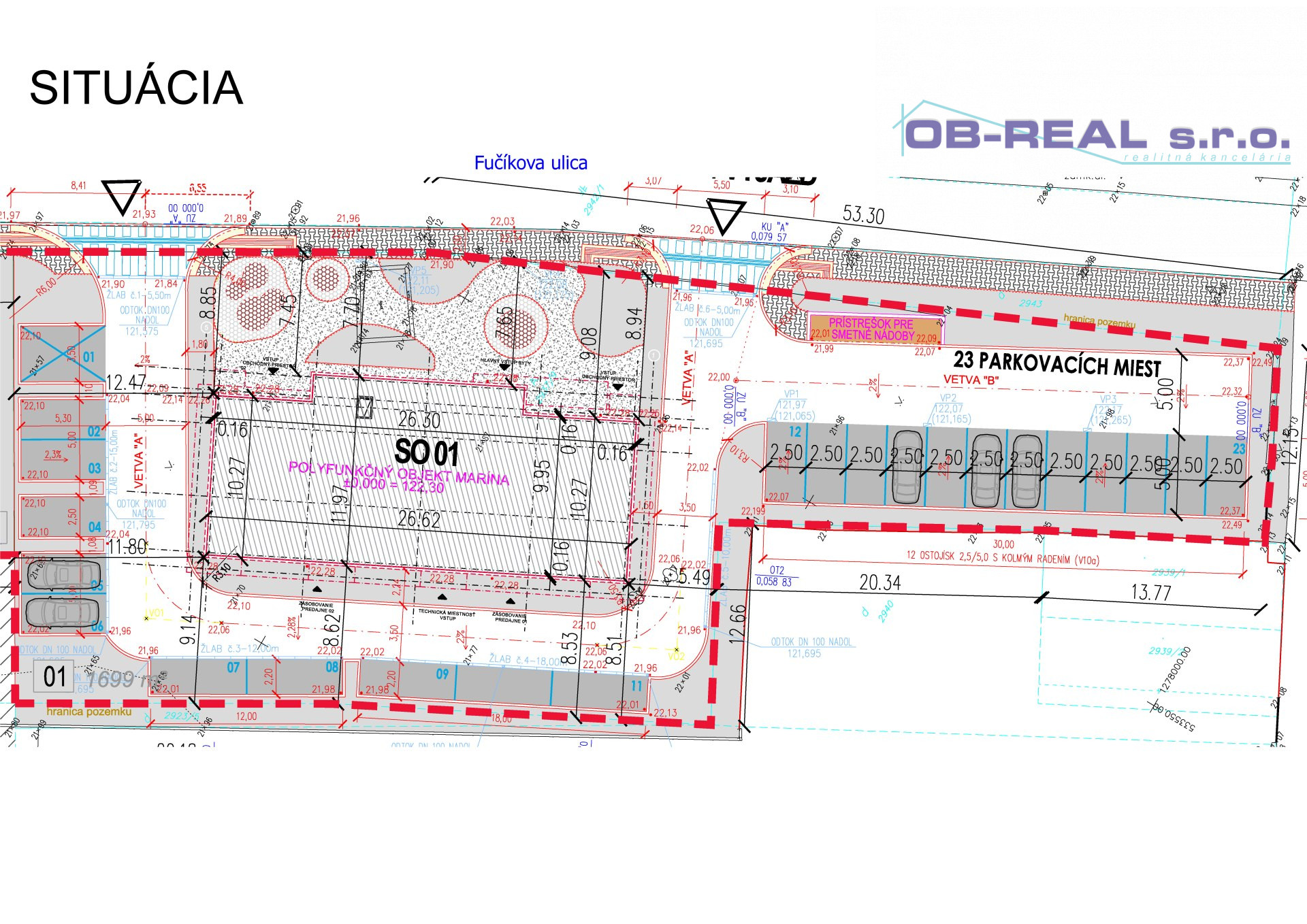 - Možnosť dokúpenia parkovacieho miesta pri bytovom dome - celkom je predaj 25 parkovacích miest. Cena jedného je 5.000,-€.