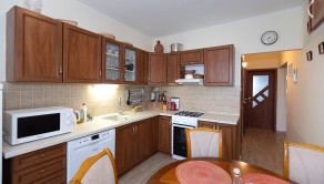 Zariadenie: V kuchni kuchynská linka so postrebičmi (umývačka riadu, kombinovaný šporák, digestor, mikrovlnka), kuchynský stôl a stoličky. V ostatných miestnostiach (viď aktuálne foto) môže zostať nábytok dohodou.
