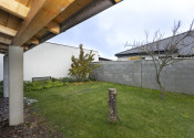 Za prístreškom zatrávnený pozemok.