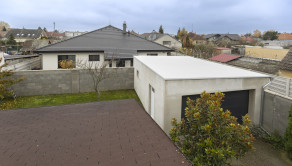 Murovaná garáž s elektronicky otváranou bránou.