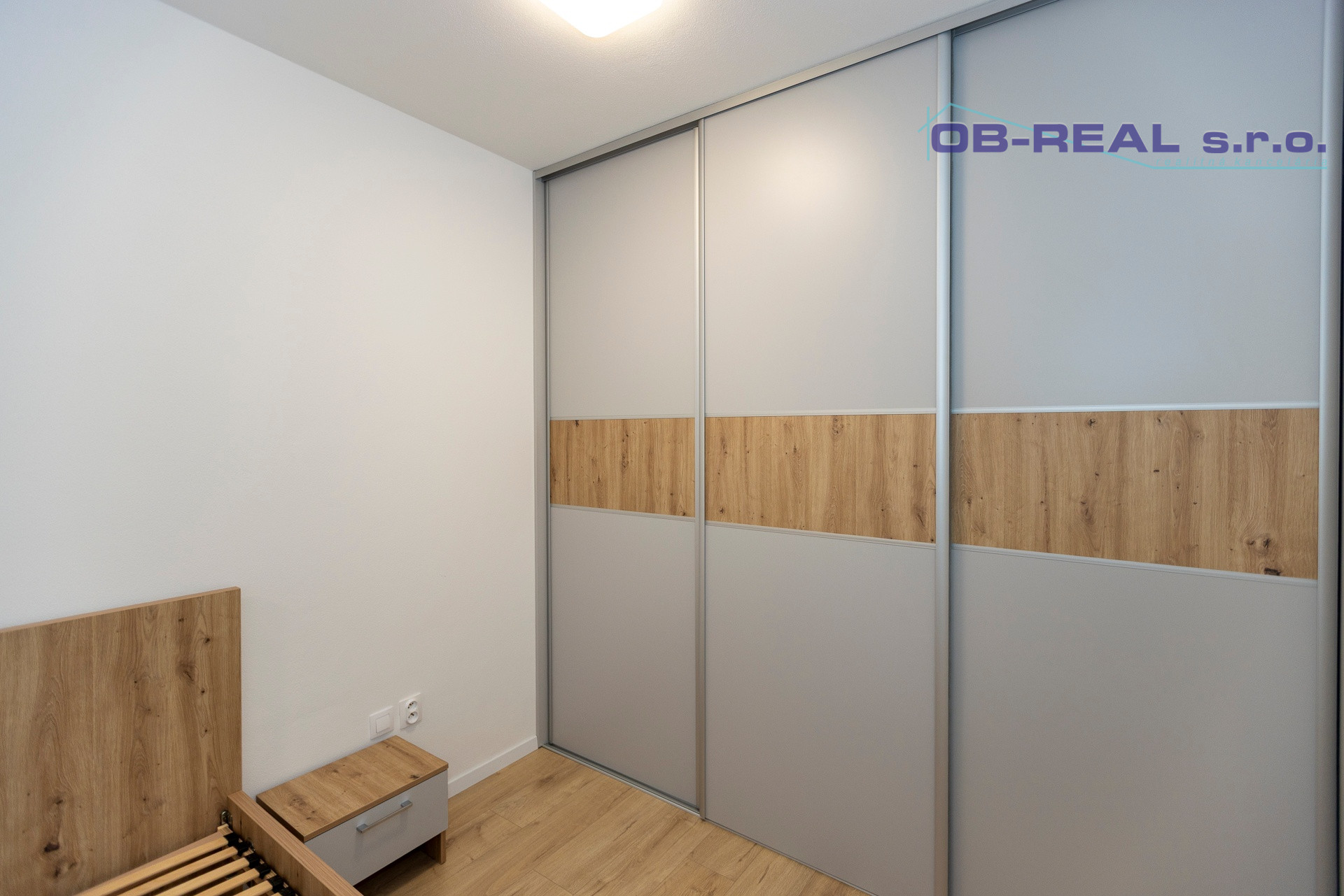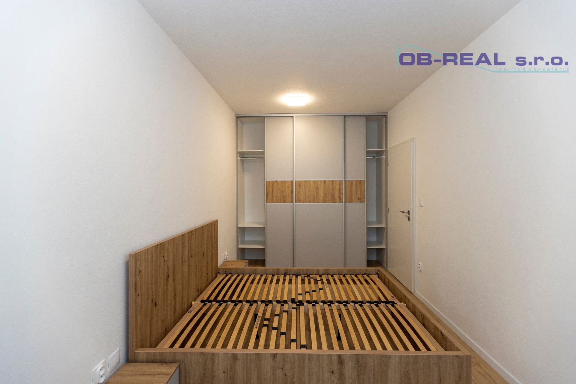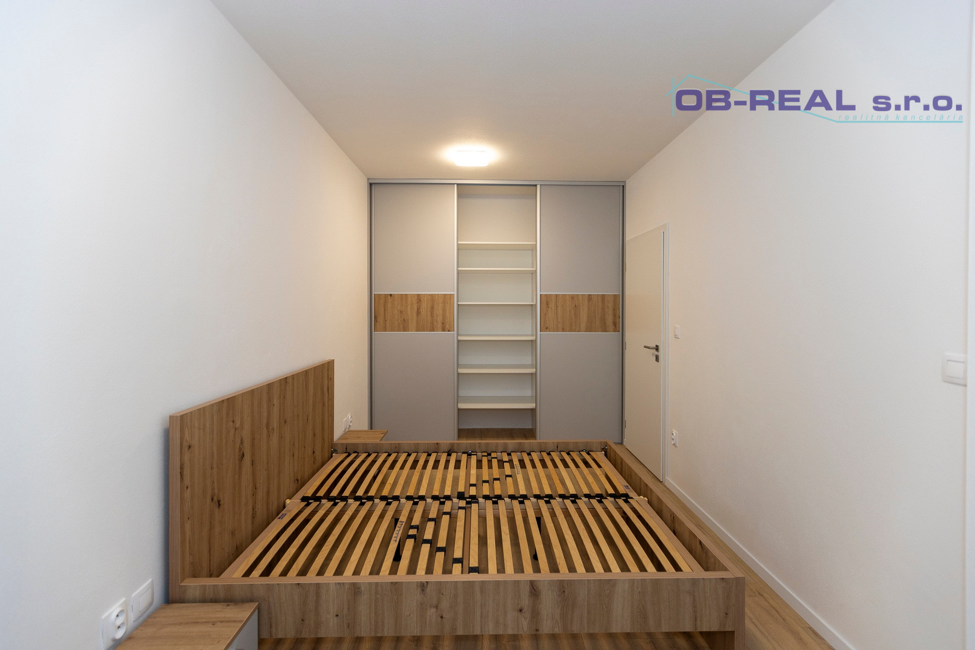 Krásne svetlý byt disponuje velkopriestorom otvorenej obývačky a kuchyne s velmi praktickou, priam dokonalou a vkusne zariadenou kuchyňou. Byt má veľkú lodžiu 6m2, na ktorú je prístup z obývačky a aj zo spálne. V spálni je satníková skriňa a dvojlôžková posteľ s nočnými stolíkmi. Na chodbe pred bytom je murovaná komora - sklad 2,11m2.
