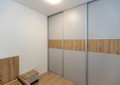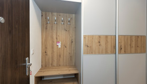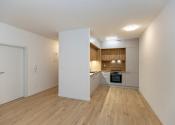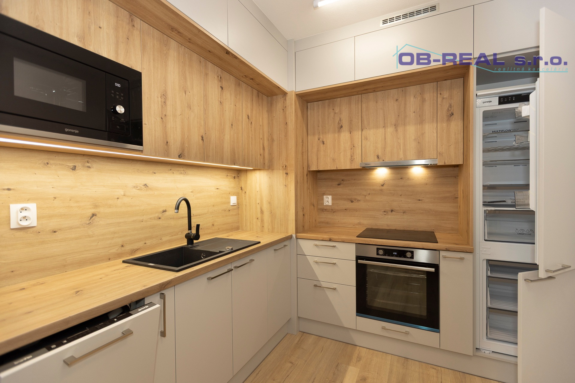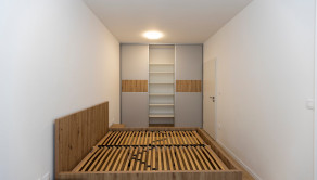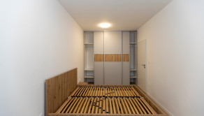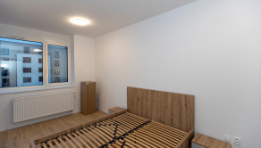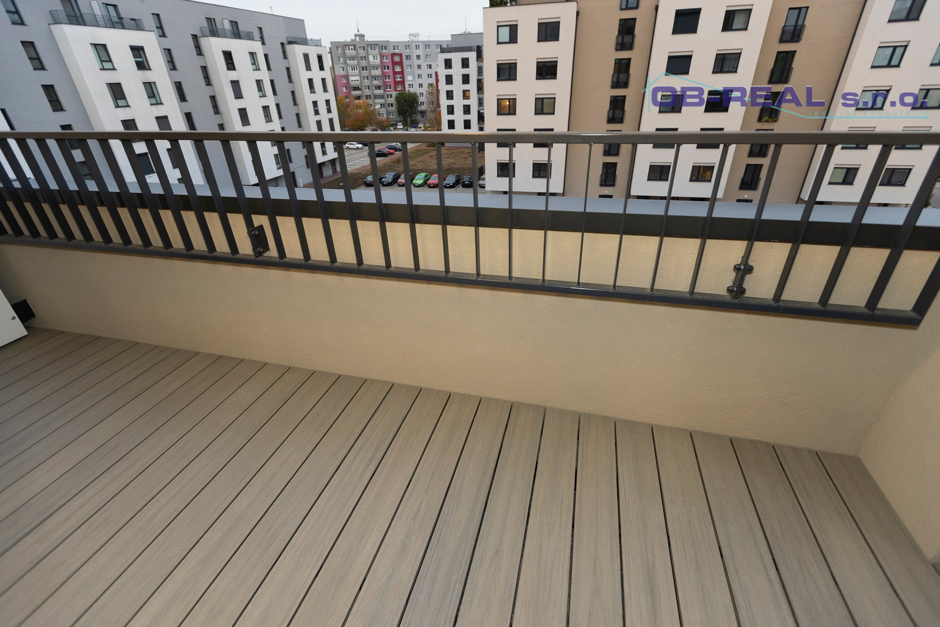 Krásne svetlý byt disponuje velkopriestorom otvorenej obývačky a kuchyne s velmi praktickou, priam dokonalou a vkusne zariadenou kuchyňou. Byt má veľkú lodžiu 6m2, na ktorú je prístup z obývačky a aj zo spálne. V spálni je satníková skriňa a dvojlôžková posteľ s nočnými stolíkmi. Na chodbe pred bytom je murovaná komora - sklad 2,11m2.