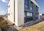 Okolie domy bude mať spevnené plochy, upravený terén a oplotenie z troch strán barierovým betónovým plotom.