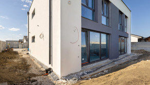 Rodinný dom je aktuálne vo výstavbe – obvodové múry sú murované z pálených presných tehál hr. 30cm, zateplené polystyrénom hr. 20cm. Priečky z tehál hr 12,5cm. vnútorné omietky budú sadrové. Podlahy sú izolované polystyrénom hr. 15cm s hydroizoláciou, vystužené karirohožou, s betónovou mazaninou. Už sú osadené vstupné a terasové dvere, nainštalované plastové okná s trojsklom. Nad prvým podlažím je železobetónový strop. Strecha je väzníková, s celoplošným zabednením, zateplená strešným polystyrénom v spáde hr. 40cm, s hydroizolačnou fóliou a ochrannou vrstvou. Budú osadené hromozvod a klampiarske konštrukcie.