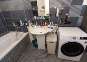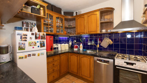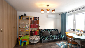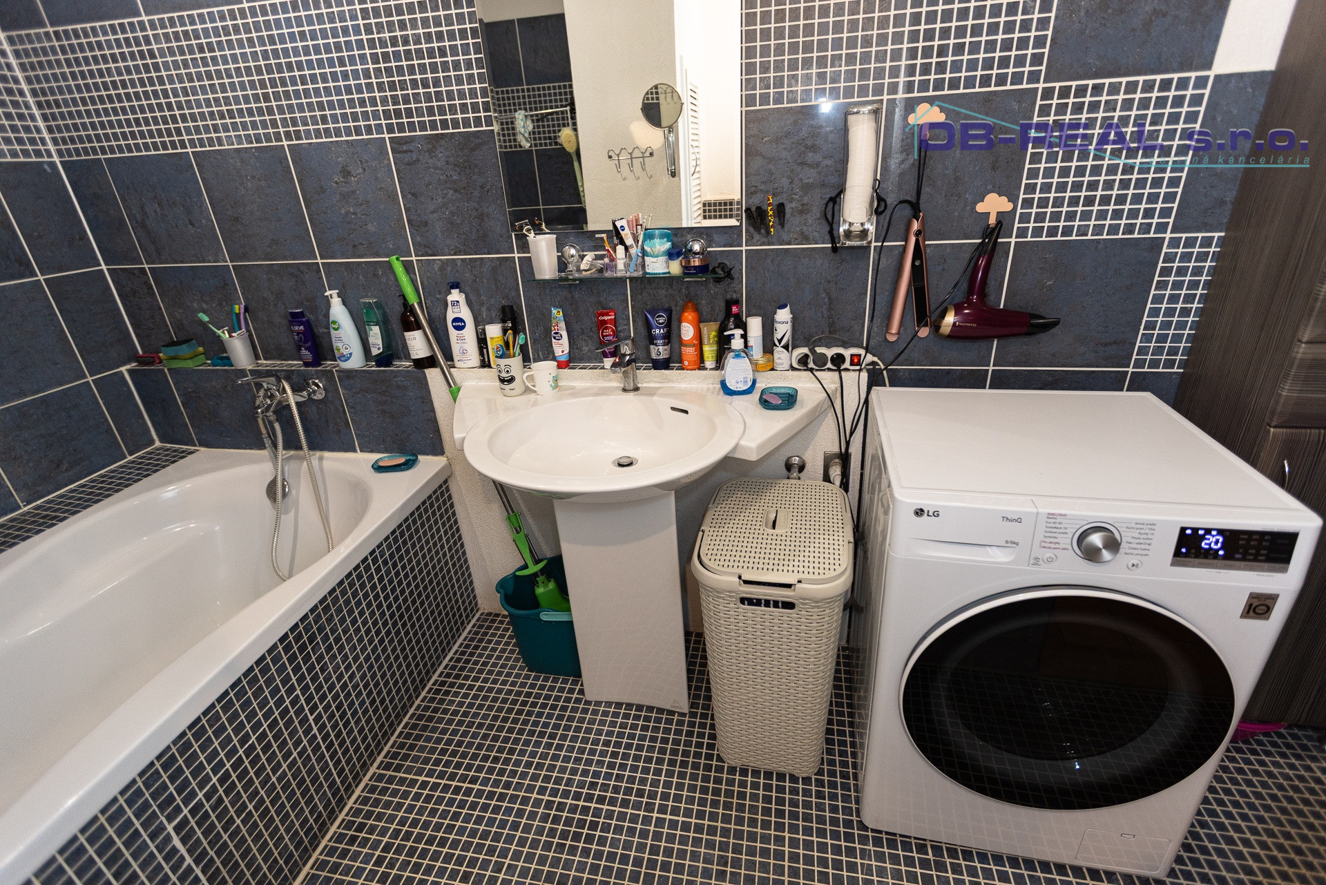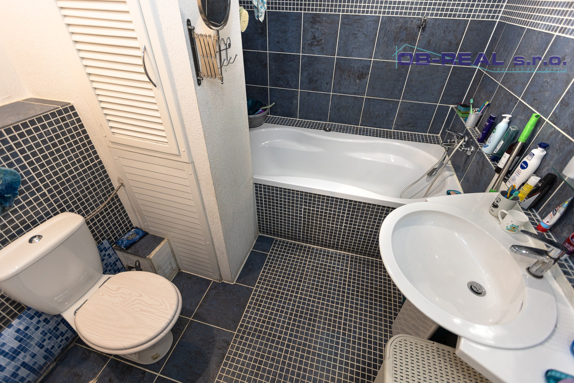 Miestnosti: Chodba, kuchyňa s pracovňou, obývačka, kúpeľňa s vaňou, umývadlom a s WC, 2 x spálňa.