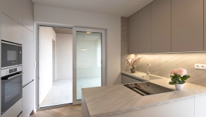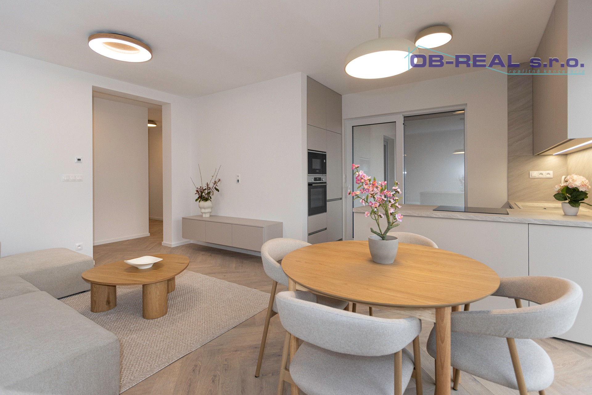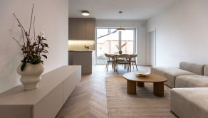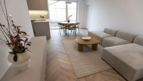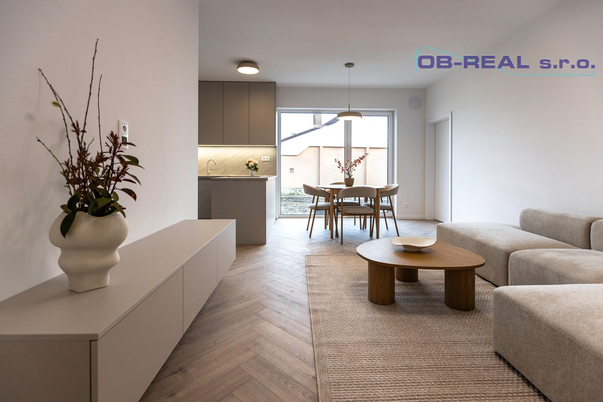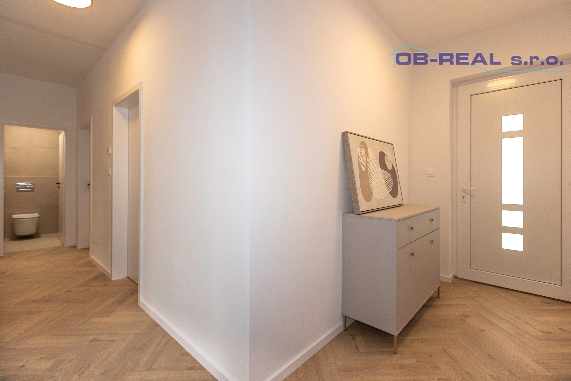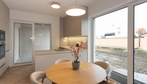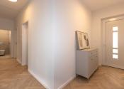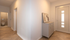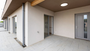 Zo zádveria je vstup na chodbu odkiaľ je voľne prístupná kuchyňa s obývačkou. Poteší technická miestnosť, terasa z kuchyne, obývačky a spálne ako aj veľká kúpeľňa so sprchou.