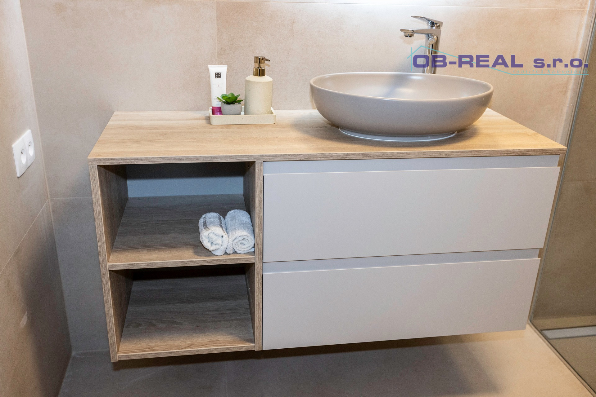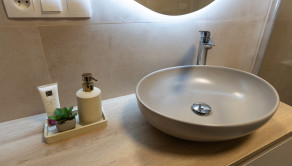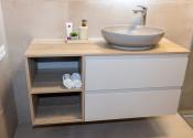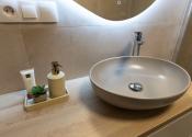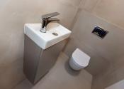 Toaleta: Umývadlo so skrinkou, WC Geberit.