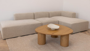 Obývačka: Skrinková zostava pod TV, čalúnení sedacia súprava, koberec, konferenčný stolík. Rozťahovací jedálenský stôl, 4x stoličky.