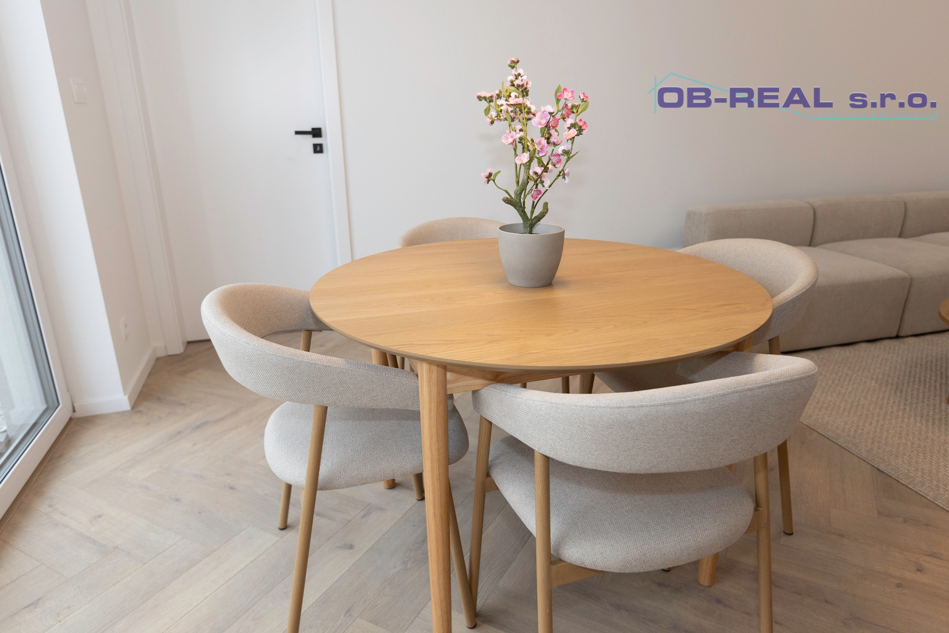 Okná sú kvalitné plastové s trojsklom. Vstupné dvere bezpečnostné hliníkové. Terasové dvere plastové s trojsklom zvonku vo farbe Antracit, zvnútra biele. Podlahy plávajúce a keramická dlažba. Interiérové dvere a zárubne drevené biele.